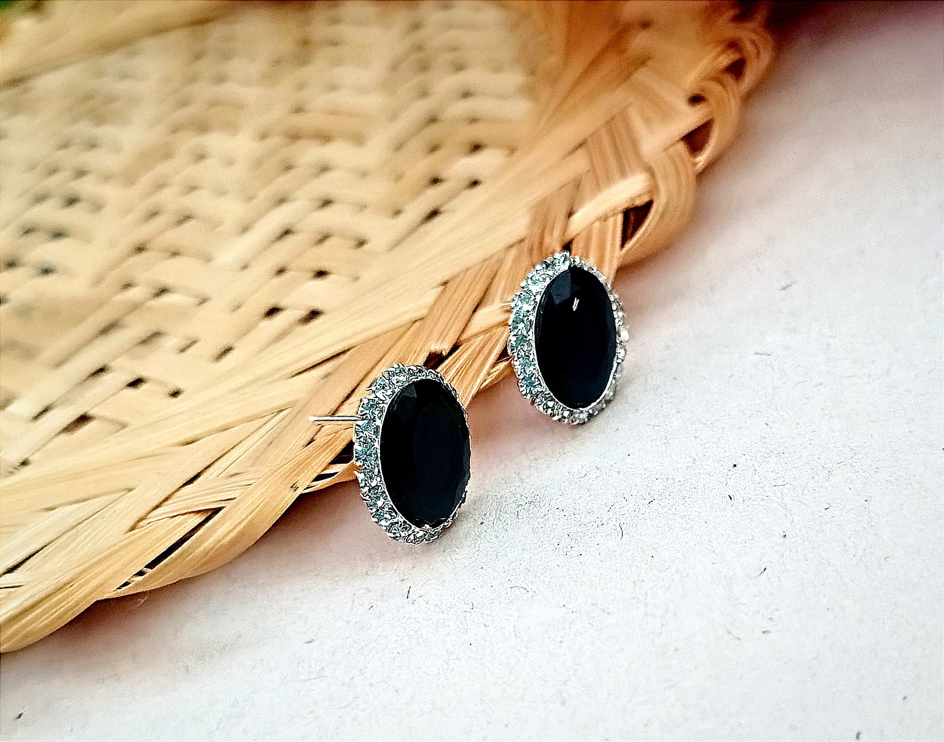 Add a touch of elegance to your look with this stunning black stone necklace set. Designed with oval-shaped black stones surrounded by sparkling crystals, this necklace creates a perfect balance of sophistication and glamour. The matching stud earrings complete the set beautifully, making it ideal for parties, festive occasions, and evening events. Pair it with sarees, gowns, or ethnic outfits to enhance your style with a bold and classy statement. ✨